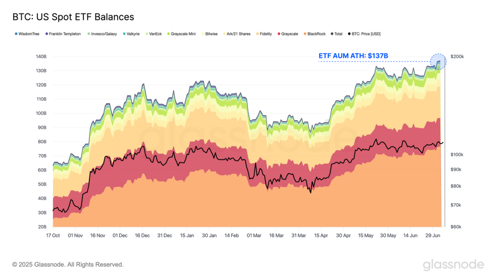 Ondanks een afname in ETF-instroom, is het beheerde vermogen gestegen naar $137 miljard. Vooral BlackRock’s IBIT speelt hierin een sleutelrol. Hun gemiddelde aankoopprijs ligt dicht bij andere belangrijke waardemodellen. Dat benadrukt hoe belangrijk ETF’s zijn geworden in het bepalen van de stemming en de prijs in de Bitcoinmarkt.