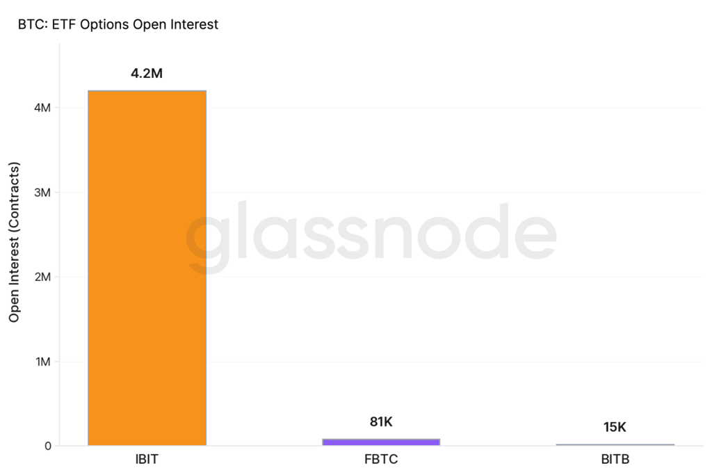 Een mogelijke reden voor BlackRock’s dominantie is hun enorme voorsprong in de optiesmarkt: IBIT heeft 97% van alle openstaande Bitcoin ETF-optiecontracten in handen.