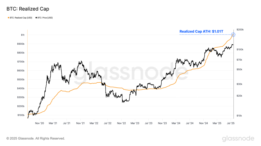 Deze recente kapitaalinstroom heeft de gerealiseerde kapitaalisatie van Bitcoin voor het eerst boven $1 biljoen gebracht. Dat is een monumentale mijlpaal voor Bitcoin, die de diepe liquiditeit en de groeiende relevantie op macro-stadioniveau benadrukt. Hoe groter Bitcoin wordt, hoe meer kapitaal erin kan worden opgeslagen, en hoe groter transacties kunnen worden afgehandeld.