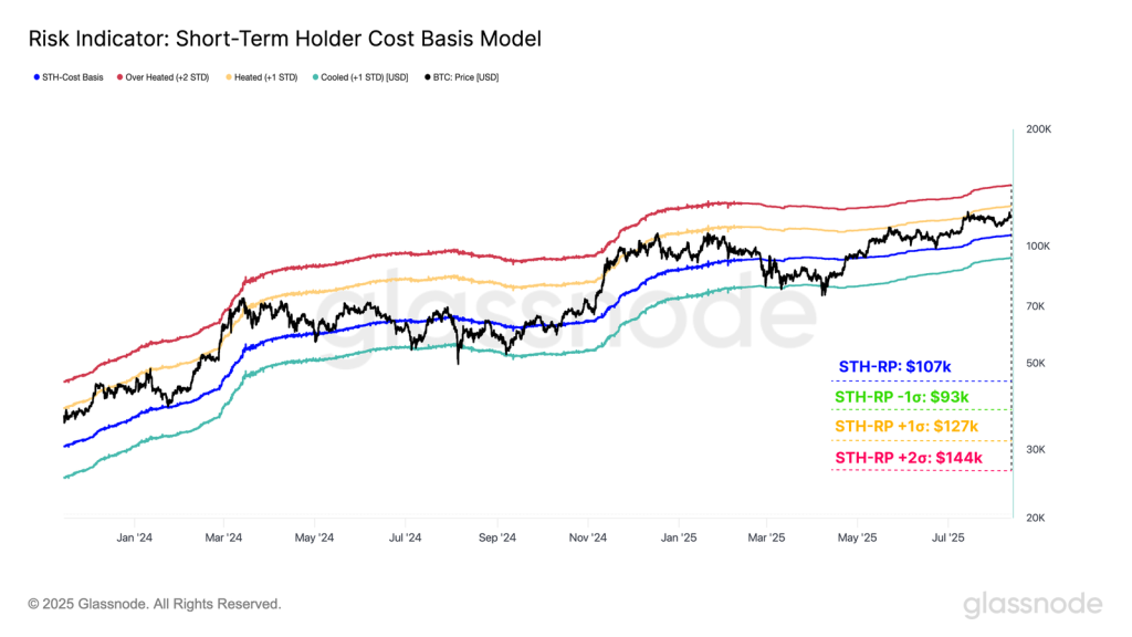 Voor Bitcoin is de Short-Term Holder-kostprijsbasis een belangrijke scheidslijn tussen bull- en bearmarkten. Met standaarddeviatiebanden eromheen wordt $127K de eerste belangrijke weerstand. Een doorbraak kan de weg openen naar $144K, waar het +2σ-niveau samenvalt met een grote weerstand en verkoopdruk kan veroorzaken.