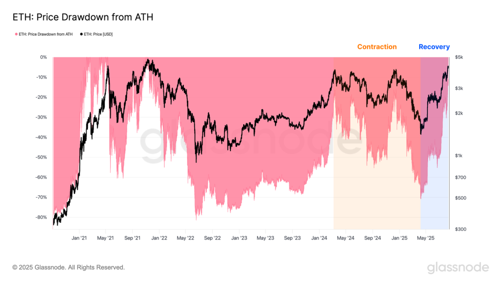 De kracht in de cryptomarkt houdt aan, met Ethereum op $4,3k, het hoogste sinds december 2021 en slechts 12,5% onder de top, terwijl Bitcoin gesteund blijft door sterke on-chain data.