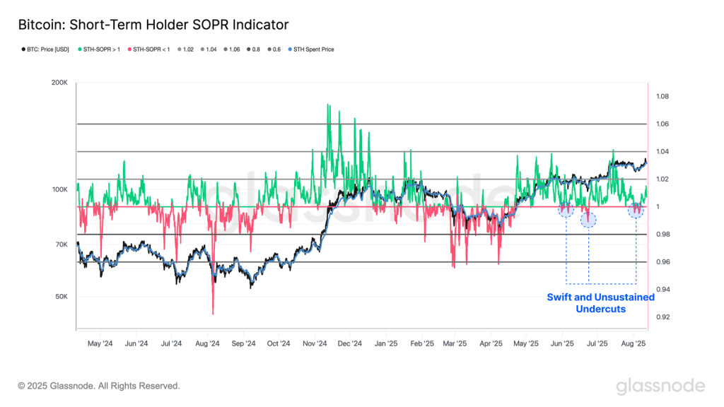 Het momentum van Bitcoin blijft sterk volgens belangrijke on-chain indicatoren. De gerealiseerde verliezen van kortetermijnhouders bij de recente terugval naar $112K bleven opvallend beperkt, terwijl het overgrote deel van de investeerders winstgevend blijft.