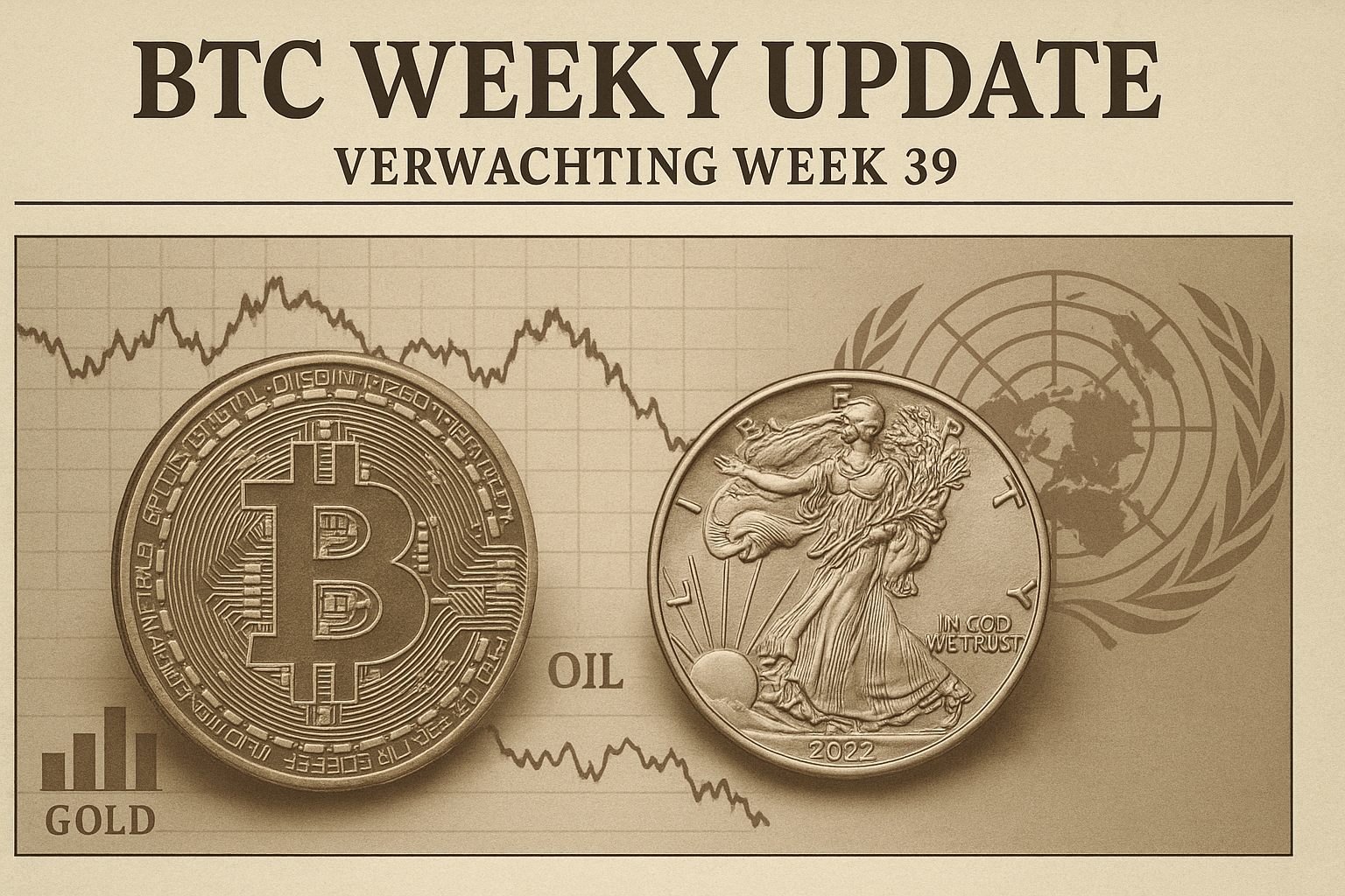 Week 39 belooft intens te worden voor de financiële markten en de cryptosector. Waar maandag nog rustig begint (los van die spontane dump), volgen vanaf dinsdag aaneengeschakelde macro-economische publicaties. De PMI’s, het Duitse ondernemersvertrouwen en de Amerikaanse woningmarkt schetsen een beeld van de economische activiteit. Donderdag vormt de kern met de Zwitserse rente, de Amerikaanse bbp-raming en cijfers over duurzame goederen. Vrijdag bereikt de week een climax met de PCE-inflatiecijfers en de expiries van grote crypto-opties. Ondertussen blijven geopolitieke spanningen rond het Midden-Oosten, Oekraïne en de diplomatieke agenda van de VN doorwerken in olie, goud en de bredere markten.